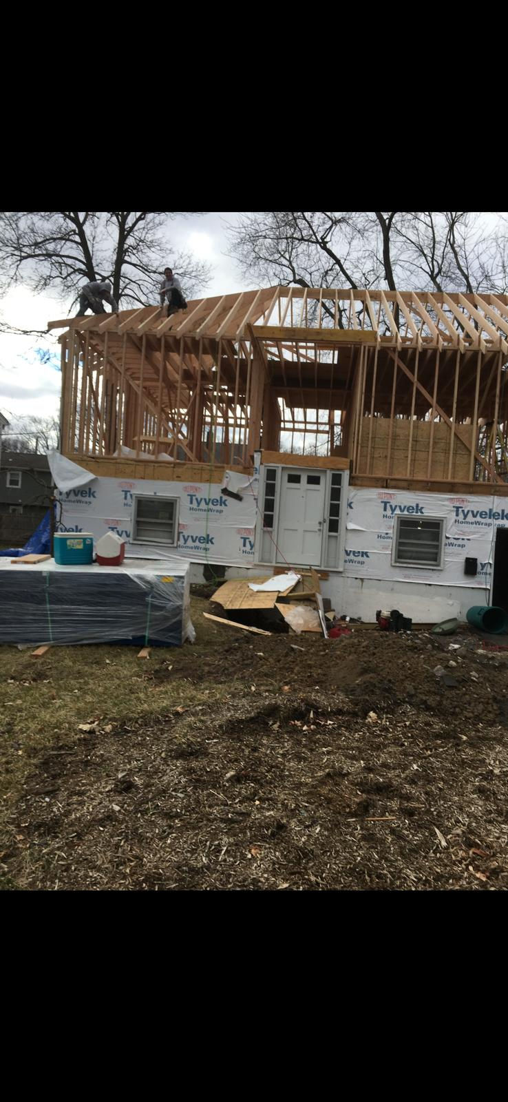 A collection of images showcasing the construction and renovation of houses, including wooden framing, scaffolding, and modern interior design elements.
